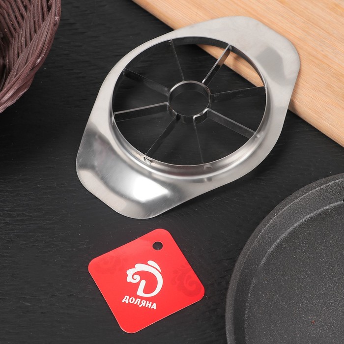 Outil pour couper en douceur les pommes en tranches. Fabriqué à partir d'acier inoxydable et de plastique de qualité alimentaire. Convient à divers produits : poires, tomates, ainsi que des fruits exotiques. Les poignées larges et confortables s'adaptent parfaitement à la main lorsque vous travaillez. La garantie constructeur est de 1 an. Prix : 5710 roubles.