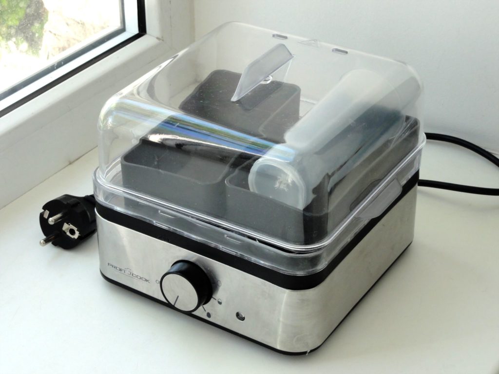 L'utilisation de l'appareil vous permettra de donner rapidement le petit déjeuner même à une famille nombreuse. Vous n'avez plus besoin de suivre l'heure, chargez simplement les œufs dans des palettes et réglez l'heure sur la minuterie. L'appareil est indispensable lors de la préparation d'un festin à la maison, lors de la préparation de salades. Les avis des utilisateurs sont extrêmement positifs.