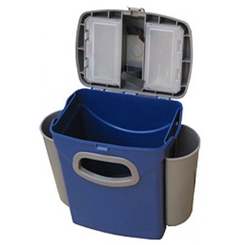 À l'intérieur, il y a plusieurs sections où tout ce dont vous avez besoin est ajouté. Sur les côtés, il y a des compartiments supplémentaires, ce qui ajoute du volume. Livré avec une sangle pour un transport plus confortable de la boîte.
