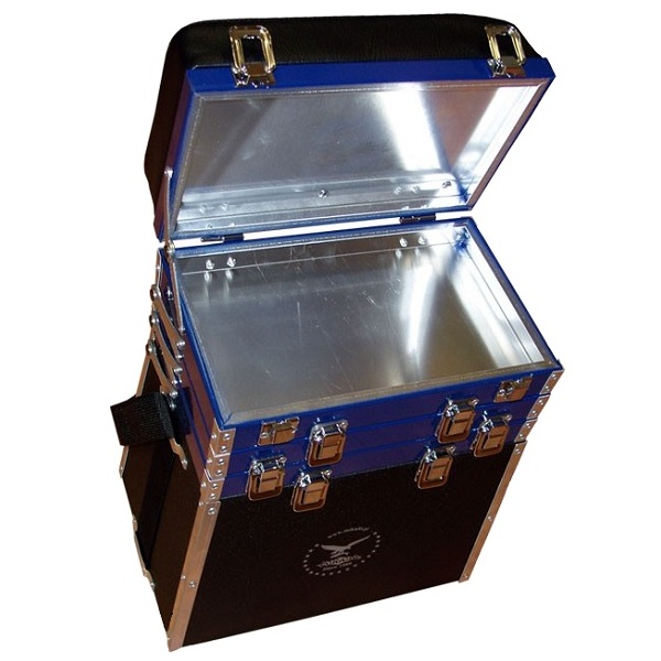 Il s'agit d'un modèle polonais, avec quatre compartiments à l'intérieur. Le corps lui-même est en aluminium, dont les coutures sont rivetées, ce qui constitue une résistance supplémentaire. En bas, il y a des dispositifs spéciaux pour créer un effet antidérapant. Sur les personnes, lorsque la boîte est à une certaine pente, elle ne roulera pas.