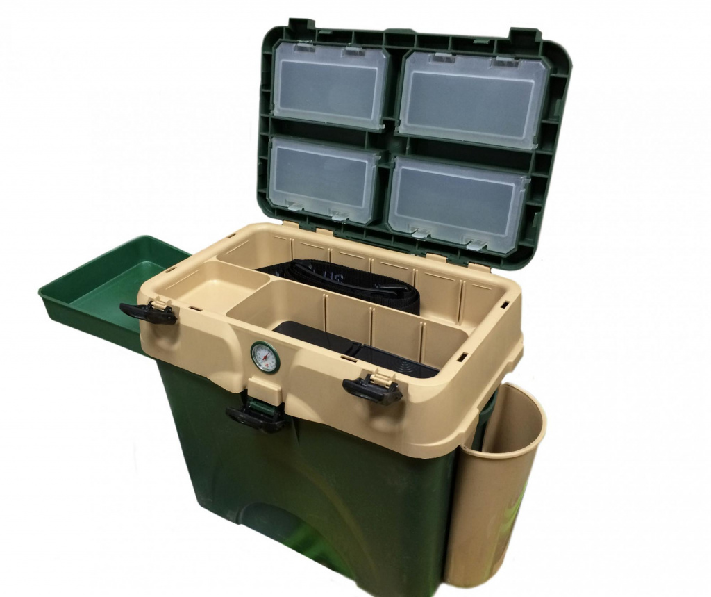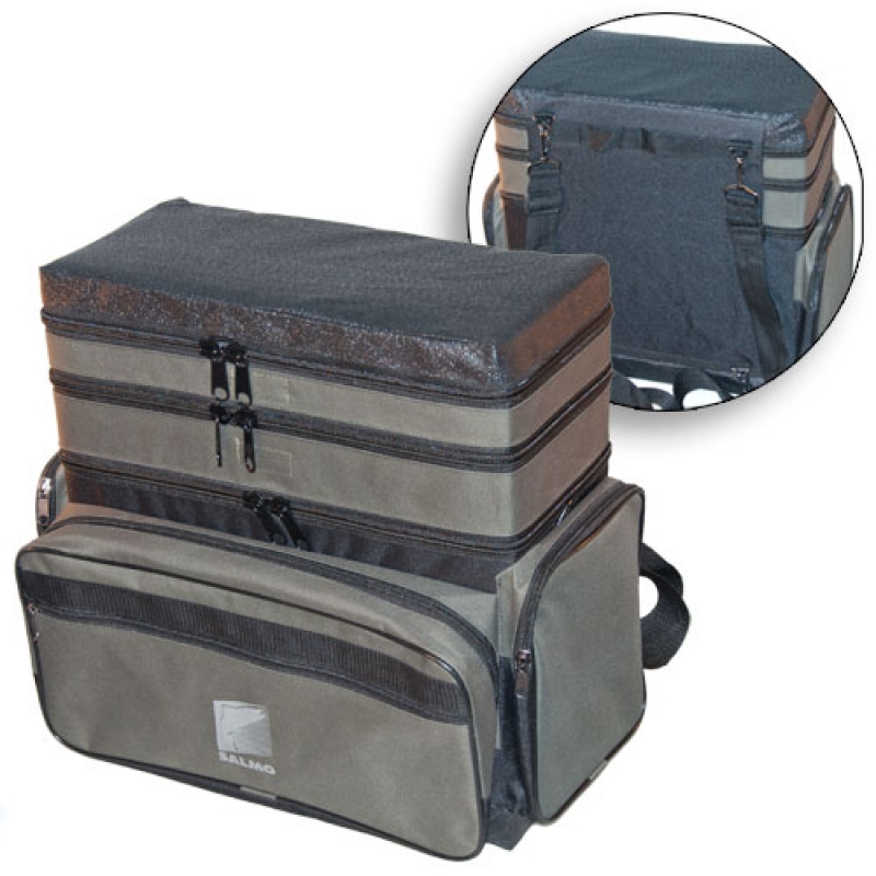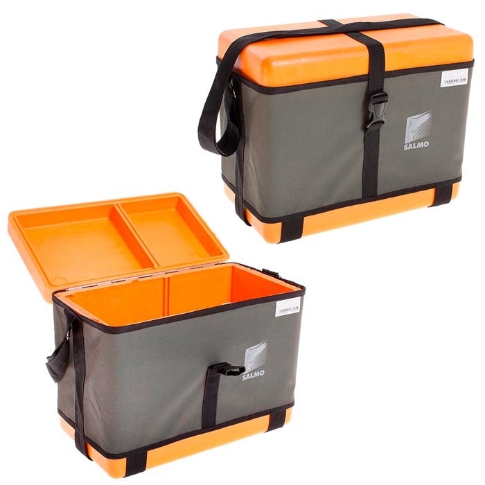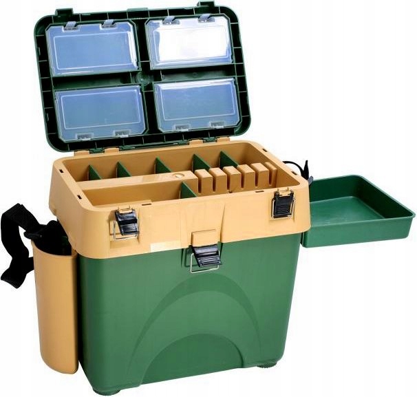 Organisateur élégant et spacieux de fabrication polonaise. Il y a de nombreux compartiments ici, ils sont situés à la fois sur le couvercle et à l'intérieur du boîtier lui-même.Avec lui, vous pouvez facilement aller à la pêche, où vous prévoyez de passer toute la journée, car la nourriture et le matériel s'intégreront parfaitement à l'intérieur.
