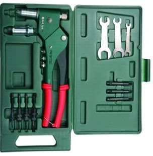 Prend en charge les rivets de type fileté, corps en fonte d'aluminium, poignées caoutchoutées avec du caoutchouc spécial. Empêcher tout glissement. Le clip de matériaux est fiable, la plage de travail (métaux réalisables pour l'outil) est large. Les buses de tous les diamètres sont incluses. La longueur des rivets peut aller jusqu'à 250 mm. Le mécanisme de pression est très durable en soi, ce qui vous permet de ne pas avoir à le remplacer pendant une longue période.