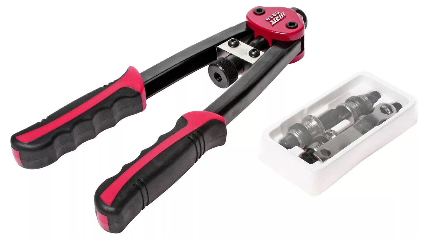 Travail du métal. Mécanisme pivotant. Le rivet est très résistant. Fonctionne bien avec les consommables de type fileté, ce qui vous permet de fabriquer des pièces préfabriquées à partir de différents produits métalliques. La poignée est conçue pour convertir la force en qualité de la manière la plus efficace. Il est complété par un ensemble de buses pour le travail de l'aluminium et d'autres métaux. La poignée est entourée de caoutchouc, pour un ajustement ferme dans la main, des mécanismes de restriction spéciaux aident à fixer la riveteuse en position de travail de la manière la plus pratique.