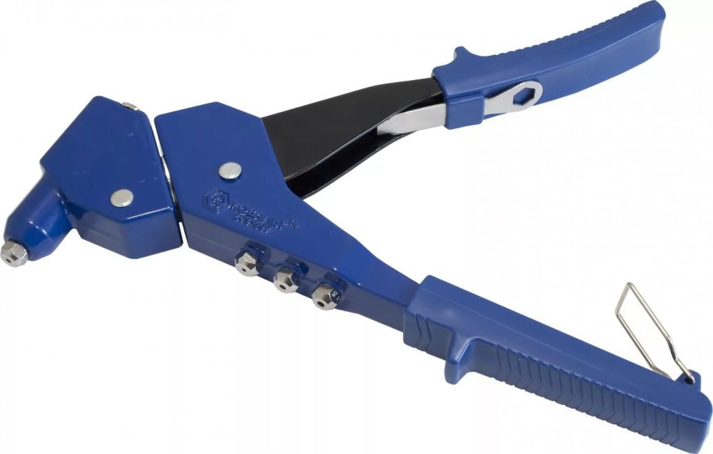 Outil de qualité professionnelle pour connecter des objets solides : tôles métalliques, matériaux de construction, produits en plastique dur. Tailles de rivets autorisées de 2,4 mm à 4,8. Le travail se déroule sur le principe d'un levier, il ne sera donc pas nécessaire d'appliquer beaucoup d'efforts. Le boîtier est en métal solide, la poignée est conçue de manière à ce qu'il soit confortable de travailler même pendant une longue période.