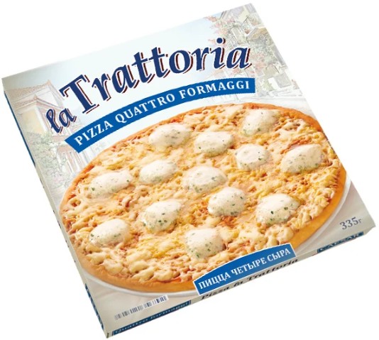 Le gâteau est cuit à partir de farine italienne, grâce à laquelle les pâtisseries sont aérées avec une croûte croustillante. Après pétrissage, la pâte est placée au réfrigérateur pendant une journée pour la fermentation. Avec l'aide de cette procédure, la base devient légère, avec un goût et un arôme riches. Pour la garniture, des ingrédients naturels sont utilisés : sauce tomate aux épices, quatre types de fromage de la laiterie du fabricant. La "Mozzarella" fond bien et s'étire bien sur un produit chauffé.