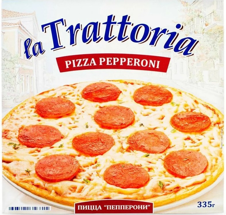 La pizza ne contient que des produits naturels. En raison de la farine italienne et de la fermentation à long terme, la pâte s'avère aérée et, après la cuisson, elle acquiert une croûte croustillante. La garniture se compose de purée de tomates, de saucisses Pepperoni et d'un mélange d'herbes aromatiques et d'épices. Poids : 330 grammes. Date de péremption : 10 jours.