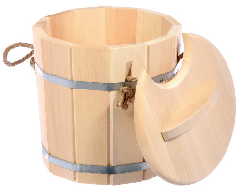 Le récipient en tilleul vous procurera un réel plaisir des procédures de baignade. Le balai, lorsqu'il est cuit à la vapeur, acquiert une certaine force et absorbe les propriétés curatives du tilleul. Le modèle a un couvercle en bois et deux poignées en corde sur les côtés. Prix : 1278 roubles.