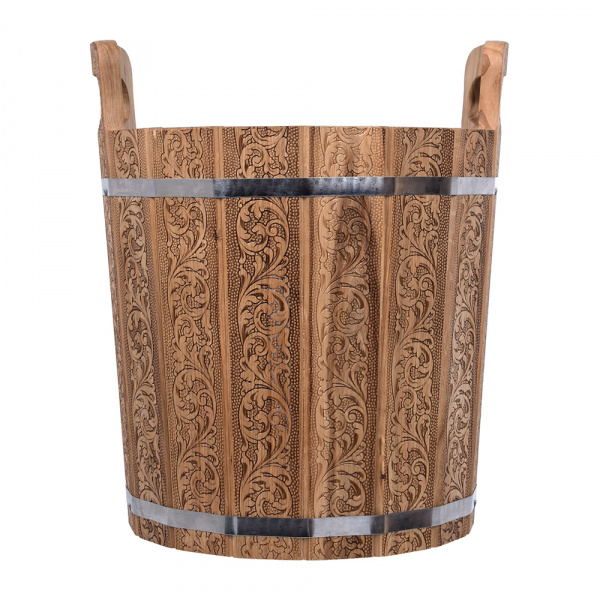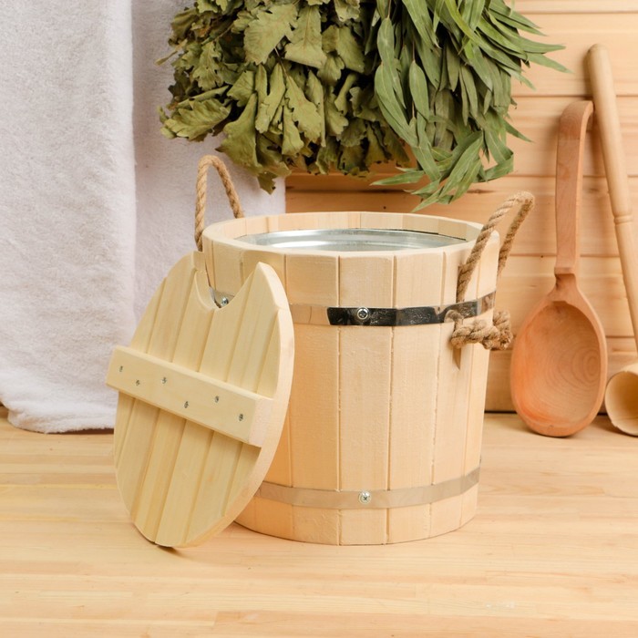 Le modèle a un petit volume, ce qui permet non seulement d'y brasser des balais, mais aussi de préparer diverses infusions à base de plantes. Il a une poignée en corde, des jantes en acier inoxydable. Le bois naturel conserve longtemps sa fonctionnalité. La couleur est naturelle (naturelle). Prix : 937 roubles.