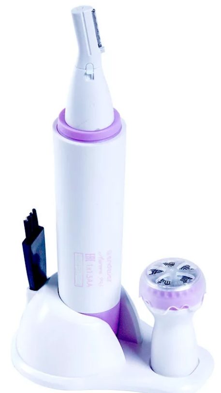 Un appareil polyvalent facile à utiliser et peu coûteux d'un fabricant chinois.Convient pour façonner les sourcils et couper les poils du visage et du corps. Il existe deux pièces jointes pour ces fonctions. Celui qui pour le corps a une forme ronde inhabituelle. L'outil est sur un support, une brosse est attachée pour en prendre soin après les procédures. Il ne peut être utilisé que pour le rasage à sec, le corps est en plastique et laisse passer l'humidité. Il y a un rétro-éclairage qui aide à éliminer les poils dans les endroits difficiles d'accès. Cet outil peut également être utilisé par les hommes pour tailler leur barbe et leur moustache. Prix moyen : environ 1000 roubles.