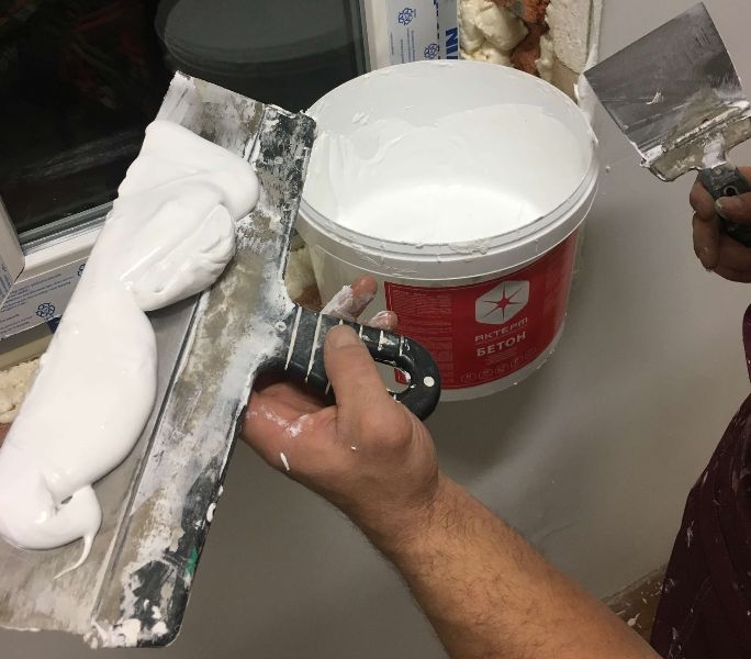 AKTERM Concrete™ est appliqué en une couche millimétrique à une température positive de 7 à 45 degrés Celsius. Si la surface à traiter est petite, les experts recommandent d'utiliser une brosse ou une spatule pour appliquer l'isolant thermique liquide.