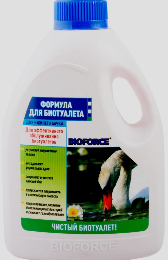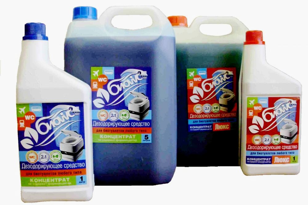 Un fabricant hollandais a présenté à ses admirateurs une large gamme de produits pour la capacité inférieure des bioclosets : Aqua kem blue, Aqua kem green, B-Fresh Green, qui se différencient par leurs arômes, comme la lavande, les agrumes, les aiguilles de pin. Ils ne permettent pas aux bactéries de se multiplier, ils sont écologiques et efficaces. Le liquide vert peut être versé dans la fosse à compost. Le produit à capuchon rose aide à former un film sur le bol, empêchant la prolifération d'eau et la formation de plaque.