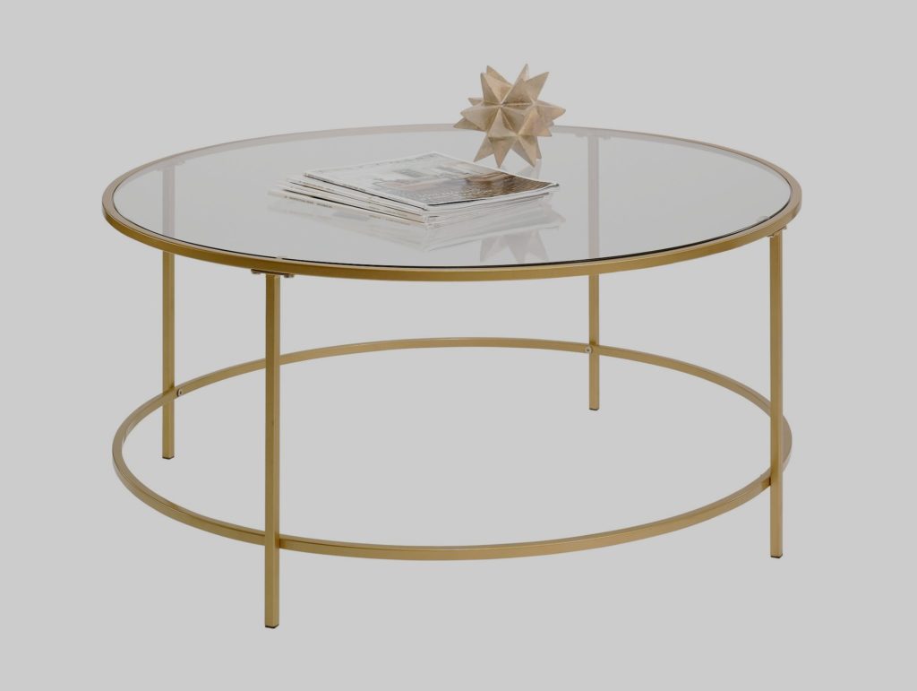 Diffère dans la simplicité. Convient pour un petit espace. Aucune luminosité et cloches et sifflets modernes. Conçu dans un style strict. La surface est super lisse. Le dessus trempé avec une subtile finition dorée égayera n'importe quel salon. Largeur - 36 pouces, poids - 31 livres. Les formes rondes et les lignes douces confèrent au produit un certain charme.