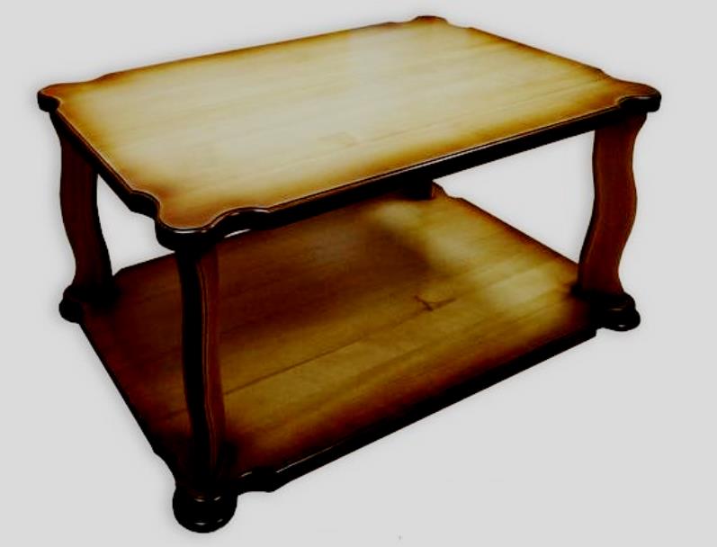 Il existe souvent des modèles populaires constitués d'un matériau combiné, par exemple un plateau de table en verre avec des pieds en aggloméré. Le revêtement en verre sur les pieds chromés est original et moderne. Vous pouvez trouver des sculptures en pierre et en céramique, décorées d'éléments de forge. Mais le plus demandé de tous les siècles était le mobilier en bois. La table basse ne fait pas exception.