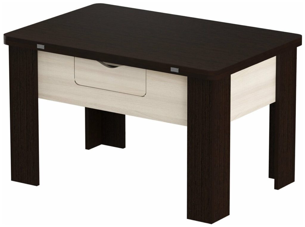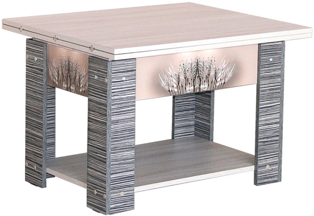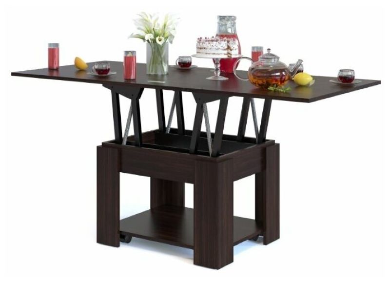 Les produits de l'usine de meubles "Sokol" sont un design pratique qui passe d'une table basse à une salle à manger à part entière. Taille 75 x 80 cm, une fois déplié, le deuxième paramètre est doublé. La hauteur passe de 45 à 72 cm.