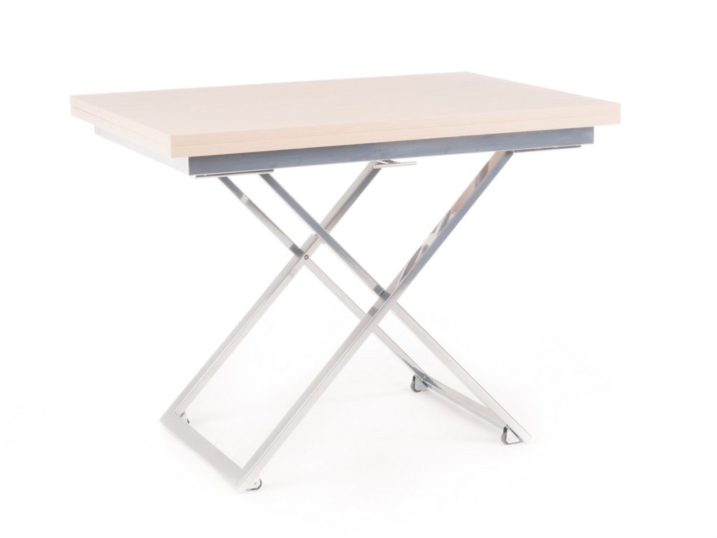 Une combinaison noble de wengé clair et de chrome conviendra à tous les intérieurs. La hauteur réglable vous permet d'augmenter la hauteur de 50 cm à 73,8 cm Une fois déplié, le plateau de 72 x 86 cm double de taille. Poids - 42 kg. Fabriqué à partir de MDF.