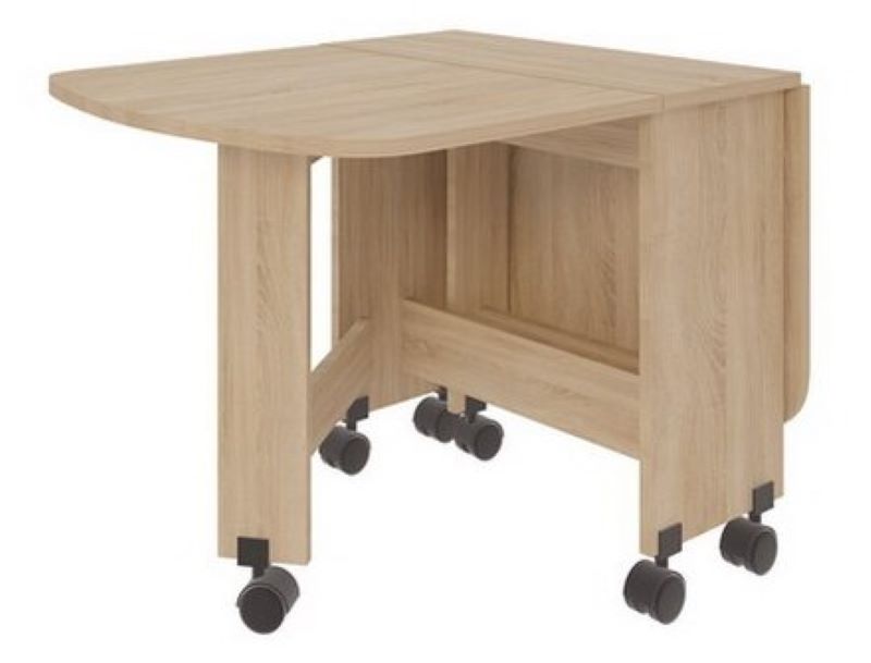Une fois pliée, cette table occupera 28 cm d'espace et dépliée - 119 cm, et pourra accueillir confortablement une grande entreprise. Hauteur - 55,1 cm Fabriqué en aggloméré. Disponible en trois versions : chêne laiteux, chêne sonoma, wengé.