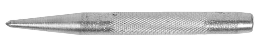 Cet outil est largement utilisé dans le domaine des travaux de mesure et de marquage nécessaires pour corriger l'installation de la perceuse. Le poinçon est une tige cylindrique dont une extrémité est affûtée à un angle de 100 degrés. De l'autre côté, il y a un attaquant, qui sera frappé avec un marteau. Le matériau utilisé est principalement de l'acier à haute résistance qui a subi un traitement thermique.