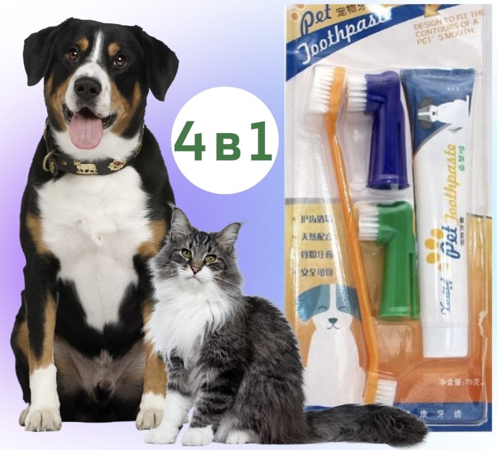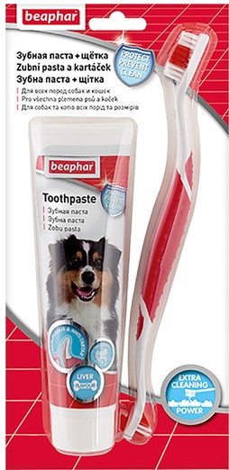 Ensemble universel pour chats et chiens de tout âge et de toute race. Le goût agréable de la pâte vous permet d'impliquer l'animal dans le processus de nettoyage. La double brosse vous permet de nettoyer la bouche et les endroits difficiles d'accès avec une grande qualité. La poignée pratique est solidement fixée dans la main, ne glisse pas, ne raye pas les gencives et les joues. Prix moyen : 1043 roubles.