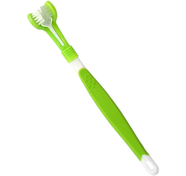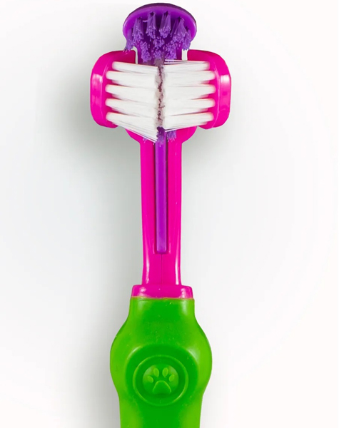Appareil à trois têtes de nettoyage conçu pour un soin minutieux de la cavité buccale des animaux de compagnie. Les poils nettoient qualitativement les dents de la plaque, du tartre, massent et renforcent les gencives et éliminent les odeurs désagréables. L'appareil vous permet de nettoyer facilement l'intérieur et l'extérieur. L'efficacité du résultat est augmentée en utilisant l'outil en combinaison avec une pâte ou un gel. Le produit de Video Mart convient aux petites et grandes races, ainsi qu'aux chats. Fabriqué en plastique ABS durable, il résiste aux morsures d'animaux, il peut donc être utilisé comme jouet. Le coût moyen est de - 244 roubles.