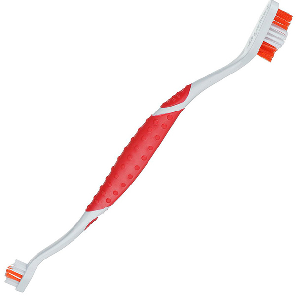 La brosse double a un manche allongé et des zones de nettoyage de différentes tailles situées des deux côtés. Cette option convient au nettoyage des dents petites et grandes, à l'avant et au fond de la bouche.