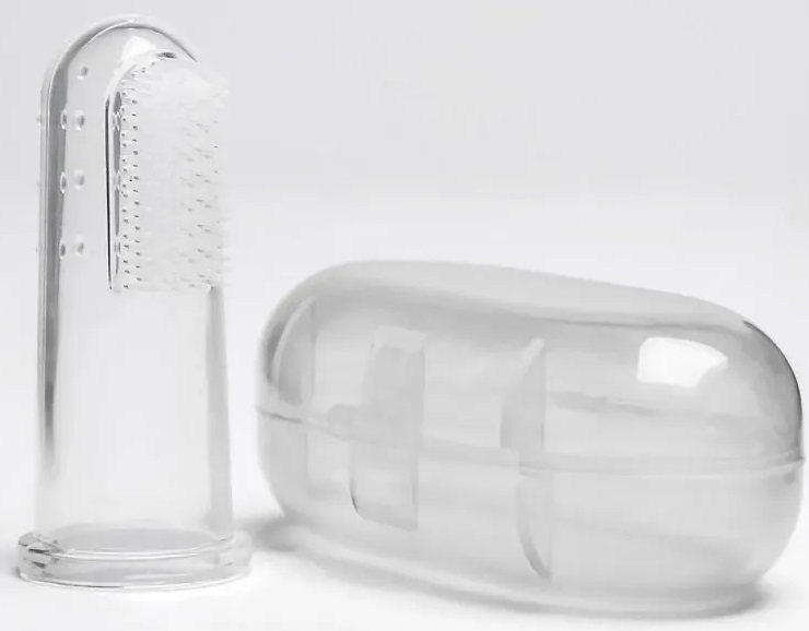 3 doigts en silicone de qualité alimentaire. Le nom "360-d" est dû à la disposition spéciale des poils qui recouvrent complètement la surface du bout des doigts. De ce fait, il capture une plus grande partie de l'espace à nettoyer et le processus de prise en charge de la cavité buccale devient plus facile et plus rapide, car il n'est pas nécessaire de rechercher une position pratique pour l'instrument et de le tourner vers la droite. Le kit comprend un récipient en plastique pour le stockage et la protection contre la poussière, ce qui permet d'emporter facilement le produit avec vous en voyage. Après utilisation, il est facile de le laver à l'eau tiède avec du savon ou de le traiter avec de l'eau bouillante pour tuer les bactéries nocives. L'ensemble est disponible en transparent, rose et bleu. Le coût moyen est de - 543 roubles.