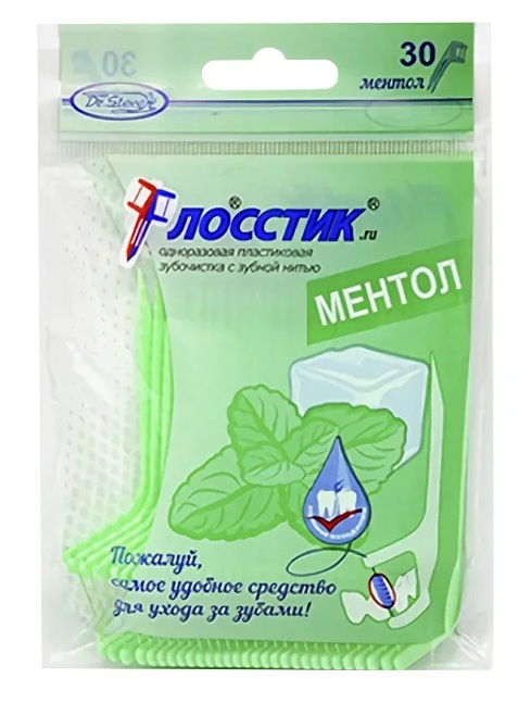 Les cure-dents avec fil sont en plastique vert clair, emballés dans un sac en plastique, qui se ferme hermétiquement grâce à un mécanisme spécial. La tête se plie, vous permet de nettoyer confortablement les dents à mâcher. En raison de son élargissement, il pénètre sous le bord gingival.
