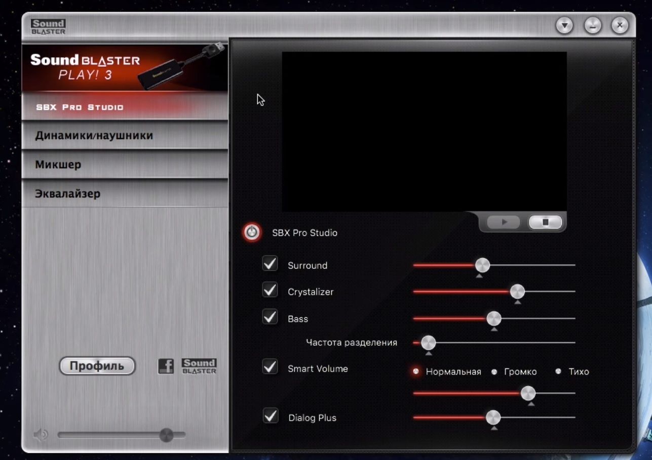 Son principal avantage (outre un bon son, bien sûr) est ses dimensions très compactes (138 x 22,0 x 9,4 mm) et son poids très faible (seulement 13 grammes). Essentiellement Sound Blaster Play ! 3 est légèrement plus grand qu'un lecteur flash, ce qui, combiné au prix, en fait une excellente option économique. Il convient également de noter que les développeurs ont pris soin de créer une application pour configurer la carte, mais elle est très simple et ne posera aucune difficulté (en fait, la fonctionnalité du produit vous permet de ne rien configurer).