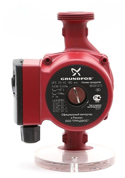 En premier lieu - équipement de pompage pour systèmes de chauffage Grundfos UPS 25-40 180. Parmi les leaders parmi les ventes de pompes pour systèmes de chauffage. Ce modèle d'unités de pompage est produit en Serbie depuis plus de 15 ans, et pendant tout ce temps, il n'a pas perdu son intérêt pour lui-même. La pompe a un système de réglage mécanique, se caractérise par un fonctionnement simple et une conception fiable. L'inconvénient de l'unité est qu'elle est souvent truquée et vendue comme une pompe de mauvaise qualité. Pour résoudre ce problème, le fabricant a créé une base de données sur le site officiel, avec laquelle vous pouvez vérifier l'authenticité des produits en saisissant le numéro de série.