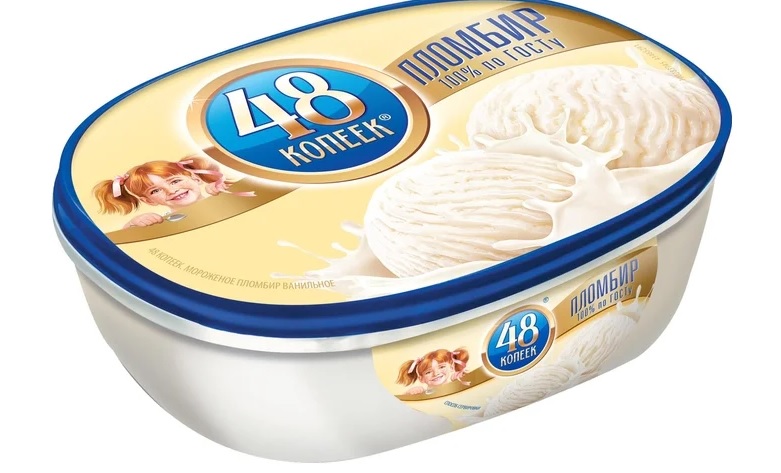 Cette crème glacée peut être achetée dans un pot en plastique, un paquet de portions ou une tasse. Le poids de la crème glacée dans le pot est de 450 grammes. 100 grammes du produit contiennent 221 kcal. La teneur en matières grasses des "48 kopecks" est de 10,2%.