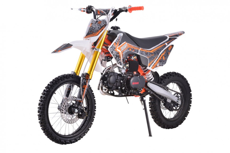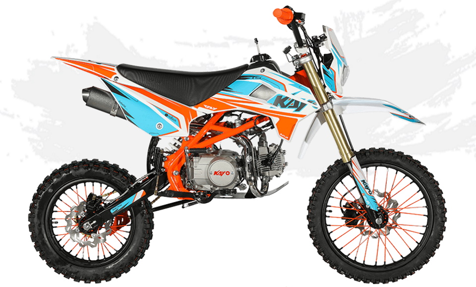 Un modèle populaire du pit bike chinois avec une conception mise à jour pour pratiquer les compétences initiales de conduite d'équipement de cross-country et de conduite sur un terrain accidenté. La base de l'appareil est un châssis en acier fiable de type "cage à oiseaux", auquel est attaché un moteur YX153FMI à quatre temps de 125 cm3, développant 11 ch. A l'avant, la suspension est assurée par une fourche télescopique traditionnelle sans réglages avec un débattement de 73,5 cm, à l'arrière un mono-amortisseur de 36 cm est sans réglages.