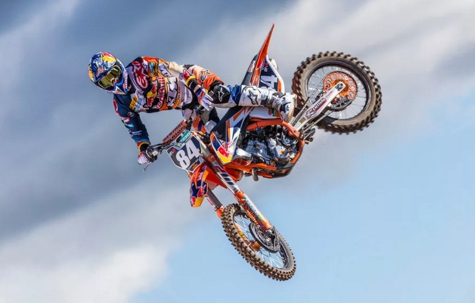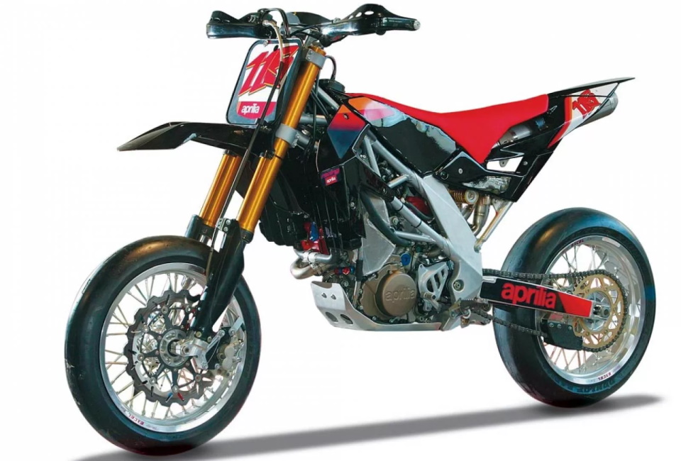 Une combinaison d'enduro américaine avec des freins et des roues de sportbike pour les courses de Supermotard ainsi que la conduite en ville.