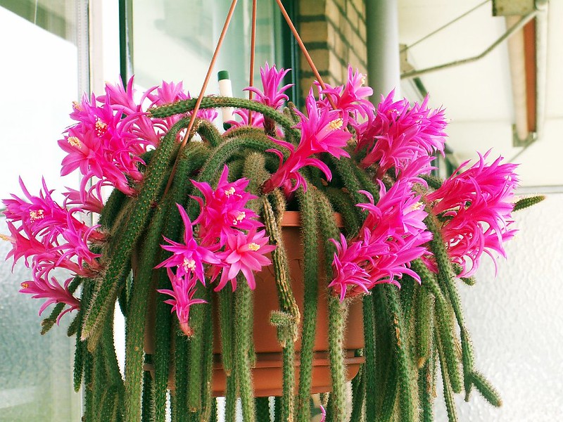 Ou, en termes populaires, juste une queue de rat. Mais, malgré le surnom disgracieux, il deviendra une véritable décoration de la maison, qui sera mise en valeur par une jardinière suspendue inhabituelle. Et au bout d'un moment, les cils ressemblant à des lianes sont recouverts de gracieux bourgeons écarlates, qui raviront longtemps les invités et les résidents de l'appartement. Les tiges peuvent pousser jusqu'à 2,5 mètres en remplissant tout l'espace libre. Ainsi, vous pouvez créer une décoration verte unique. Les branches insolites seront certainement appréciées des jardiniers qui souhaitent donner à la pièce l'entourage d'une planète fantastique.
