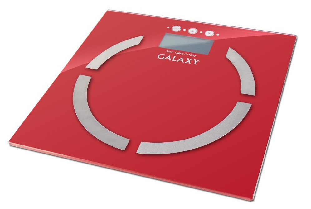 Les balances intelligentes ont une surface en verre et un design inhabituel - elles sont fabriquées en rouge, les capteurs électroniques sont situés en cercle. La charge maximale autorisée sur l'appareil est de 180 kilogrammes, la précision de mesure est de 100 grammes. Il existe de nombreuses fonctions intégrées: détermination de la fraction massique de graisse, de tissu musculaire, d'eau, de tissu osseux. Prix - 850 roubles.