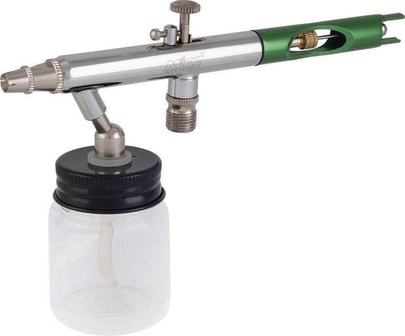 Aérographe à main pour les petites tâches qui doivent être effectuées rapidement. Un excellent assemblage et des matériaux durables garantissent une utilisation à long terme dans les conditions les plus extrêmes.Un aérographe portatif avec un type de pulvérisation pneumatique peint facilement de petites surfaces en une fraction de seconde. L'utilisation du système d'alimentation en pression le plus économique dans le canal permet d'utiliser un remplissage complet du cylindre pendant plusieurs heures de fonctionnement continu.