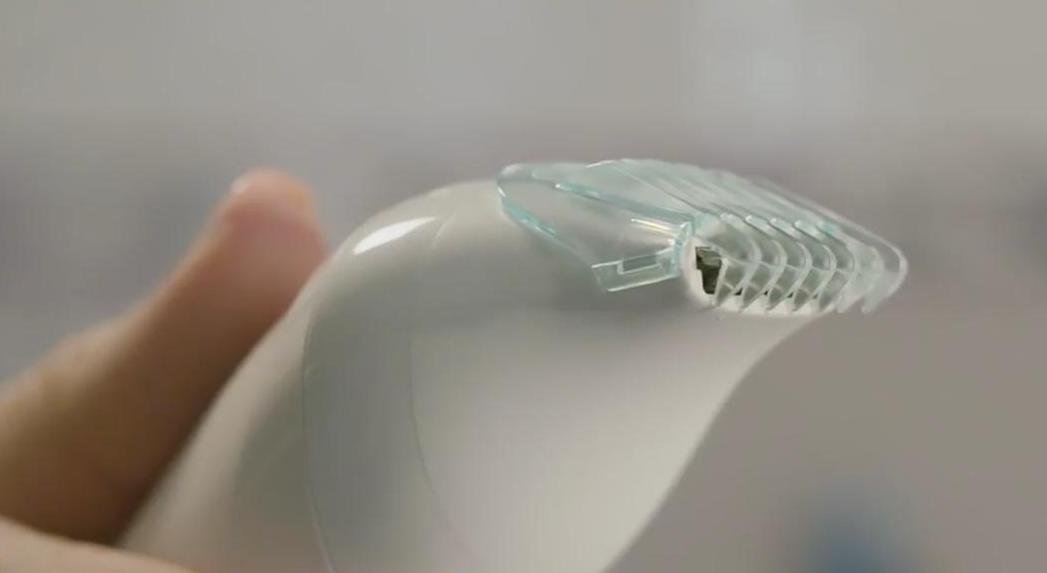 Ce modèle dispose de huit buses : massage, étirement de la peau (pour réduire la douleur), pour le visage, pour le massage du corps, pour le gommage du corps, pour les zones sensibles, peigne et tête de rasage.