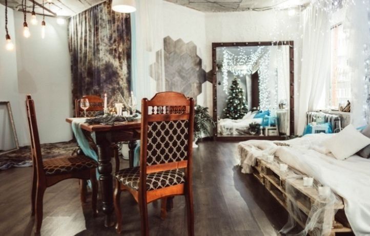 Le studio ne doit pas être vide, l'intérieur doit être bien organisé et pensé, il est très important d'avoir la possibilité de zonage, c'est-à-dire de diviser l'espace en plusieurs parties thématiques, afin que les photos ne paraissent pas monotones.