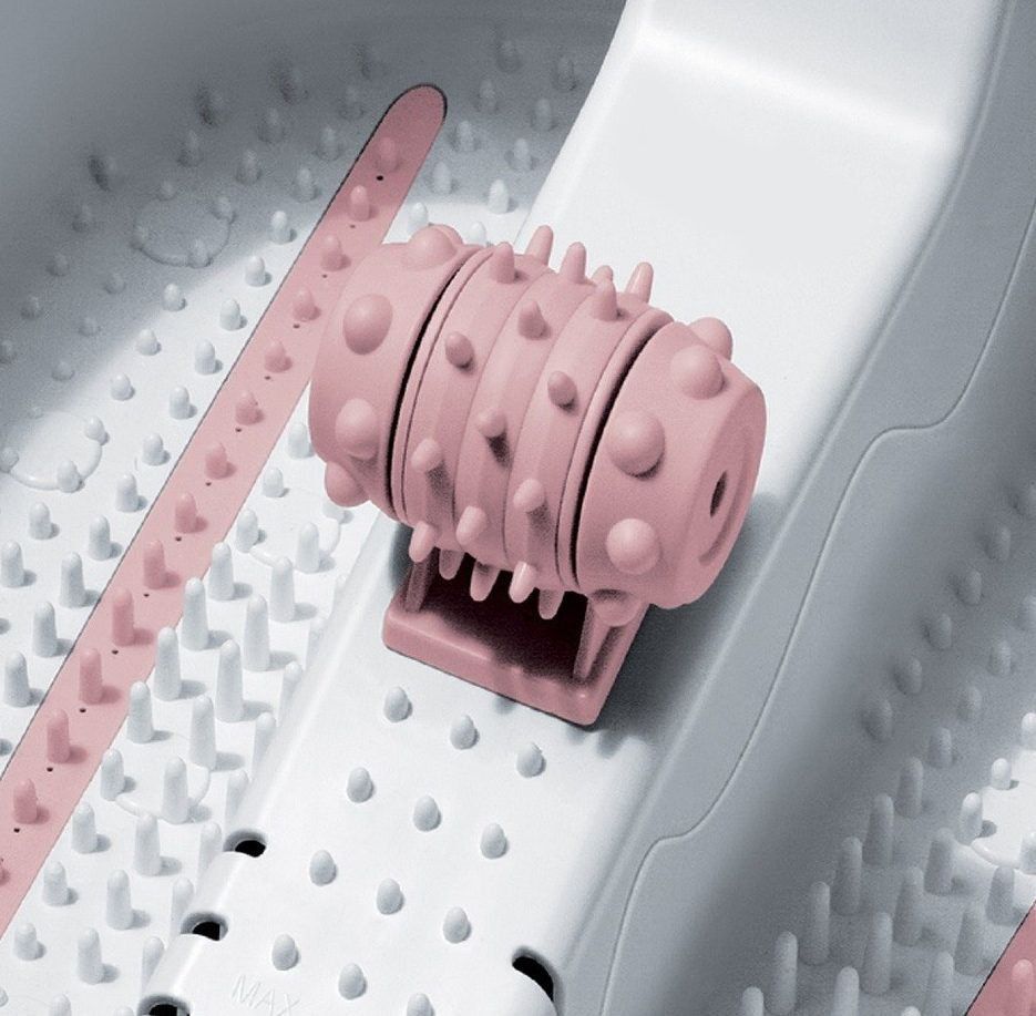 Baignoire d'hydromassage avec système de commande à bouton-poussoir, équipée d'un écran et d'une minuterie qui vous permet de régler la durée de la procédure. La conception de l'appareil est faite de plastique durable de haute qualité, a un fond d'acupuncture. Fournit deux types de massage - le massage à bulles (jacuzzi) et le massage par vibration, qui peuvent être combinés avec un massage au rouleau. Prix moyen : 6 450 roubles.