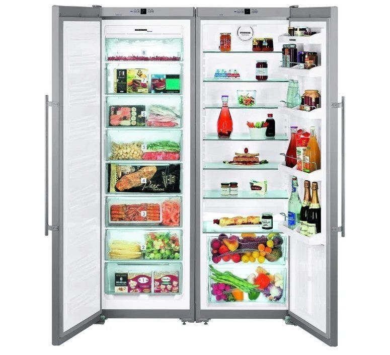 Un réfrigérateur à double chambre à deux portes d'une entreprise allemande bien connue consomme environ 303 kWh par an. Il n'y a qu'un seul compresseur dans l'appareil, le fluide frigorigène utilisé est l'isobutane. La chambre de congélation est située en bas. La commande de l'appareil est électronique. L'appareil n'a pas besoin d'être dégivré et, en l'absence d'électricité, il est capable de garder le froid à l'intérieur jusqu'à 20 heures et jusqu'à 15 kg de nourriture peuvent y être congelés par jour.