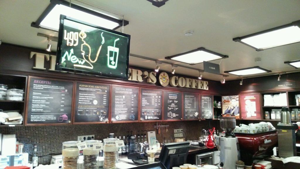 Un endroit idéal pour se détendre après le shopping ou une simple promenade dans le centre d'Omsk pour les amateurs de style américain ou européen. Des salles spacieuses avec des cheminées, une salle séparée pour les enfants, qui a beaucoup de choses intéressantes, des coins romantiques pour les rendez-vous. Les visiteurs se voient proposer une large sélection de cafés, une approche individuelle de préparation à la demande du client (en utilisant des ingrédients supplémentaires), des cocktails cuits à la vapeur, un menu pour les végétariens. Le narguilé est un service supplémentaire. Ici, vous pouvez également acheter de la nourriture à emporter, commander un déjeuner d'affaires et utiliser l'accès Internet gratuitement pendant votre séjour.