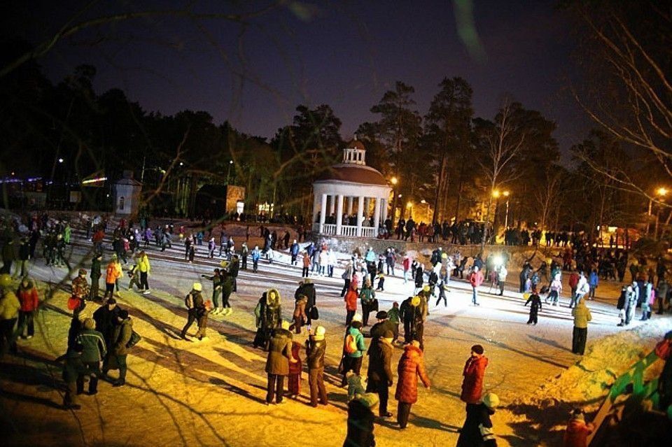 Il y a toujours une atmosphère chaleureuse à la patinoire : une musique agréable joue et le soir, les lumières s'allument sous forme de lanternes et de guirlandes. Une partie de son territoire est située dans la forêt, de ce fait, les épicéas et les pins recouverts de neige contribuent à créer une ambiance "fabuleuse". La patinoire est également attrayante car elle est pratiquement invisible depuis les allées du parc.