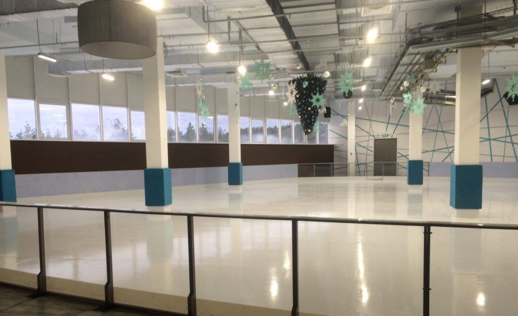 Cette patinoire dispose de 2 espaces : un pour les débutants, et le second pour les professionnels. Une belle clôture de glace décore la patinoire. Des services de location et d'aiguisage de patins sont disponibles. De plus, un vestiaire chaleureux avec une consigne à bagages a été aménagé. Le patinage sur glace est absolument gratuit de 10h00 à 22h00.