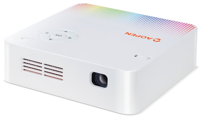 Il s'agit d'un mini projecteur multifonctionnel. Le modèle a un corps ultra-mince, dont l'épaisseur n'est que de 3,4 cm, ainsi qu'un poids léger (0,475 kg), ce qui en fait un assistant exemplaire pour un homme d'affaires en voyage d'affaires.