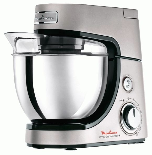 Modèle 5 en 1 très puissant (1000 W). Une gamelle en métal de 4,3 litres subviendra aux besoins d'une famille nombreuse. Le pétrin est capable de préparer une pâte homogène de consistance liquide et molle (dense). Un mixeur coupe la glace, un coupe-légumes peut hacher, râper ou hacher les aliments. Le hachoir à viande est équipé d'une vis sans fin en métal. Fait face à la viande dure et nerveuse, au poisson dense. Il y a un presse-agrumes.