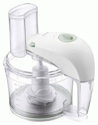 Un excellent modèle compact, équipé d'un broyeur, d'une râpe, d'une purée de pommes de terre. Peut hacher la viande. Bol en plastique 2,1l. Une excellente option pour les familles avec de jeunes enfants qui commencent à recevoir des aliments complémentaires. Les purées de légumes et de viande sont préparées dans ce robot très facilement et rapidement. Il n'y a qu'un seul mode de vitesse, mais il est pulsé.