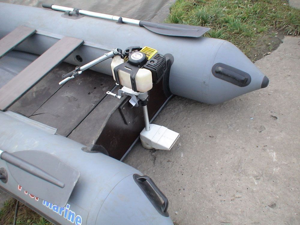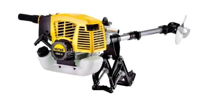 Un moteur à deux temps assez léger équipé d'un réservoir de carburant externe conçu pour 24 litres. Avec un tel équipement, vous pouvez aller à de faibles profondeurs. Il est possible de soulever manuellement l'appareil, de régler son inclinaison.