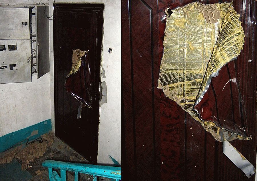 Le côté appartement de la porte est fermé avec tout matériau approprié. Des charnières avec roulements sont utilisées pour fixer le cadre de la porte. Comme protection supplémentaire, une goupille anti-enlèvement spéciale est utilisée, qui s'étend lorsque la porte est fermée.