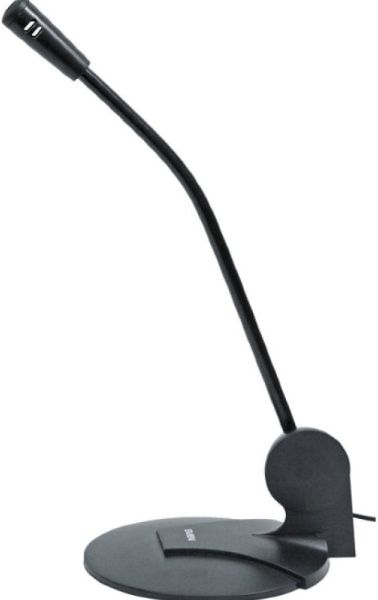 Il s'agit d'un modèle filaire doté d'une protection contre le vent, ce qui empêche la pénétration d'interférences dans la conversation. Le microphone est monté sur un support et peut être ajusté à la trajectoire souhaitée grâce à la présence de pattes flexibles.