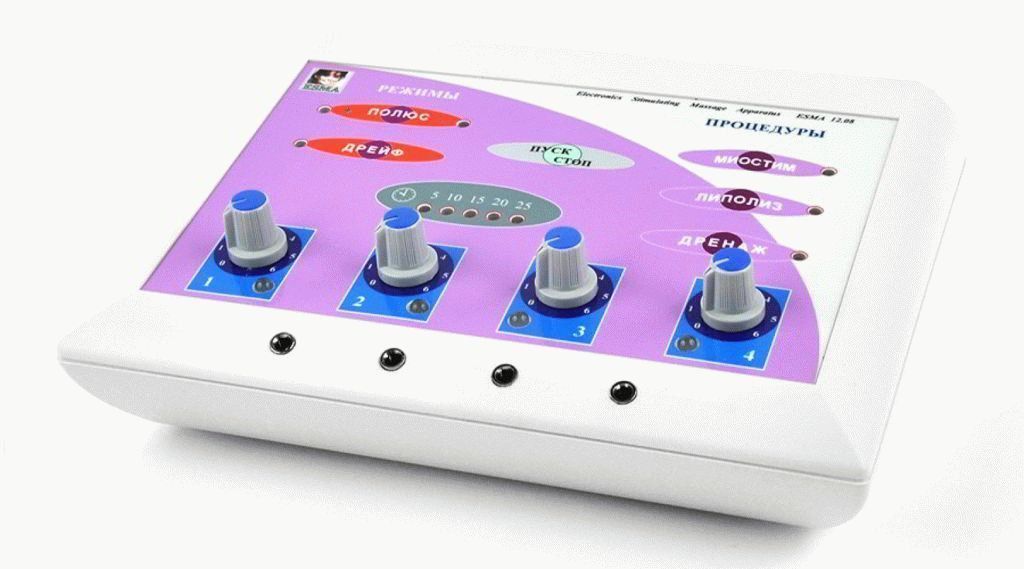 Il s'agit d'un appareil professionnel, qui peut néanmoins être utilisé à la maison. Sa différence est qu'il y a beaucoup de fonctions et qu'il est conçu pour résoudre plusieurs problèmes. Cet appareil peut être utilisé non seulement pour la myostimulation, mais aussi pour l'électrolyse et le drainage lymphatique. Avec lui, vous pouvez travailler tous les groupes musculaires, y compris non seulement les muscles du corps, mais aussi le visage. Il est utile pour renforcer les tissus musculaires, pour la mise en forme du corps, pour éliminer les signes de cellulite et les effets des blessures.