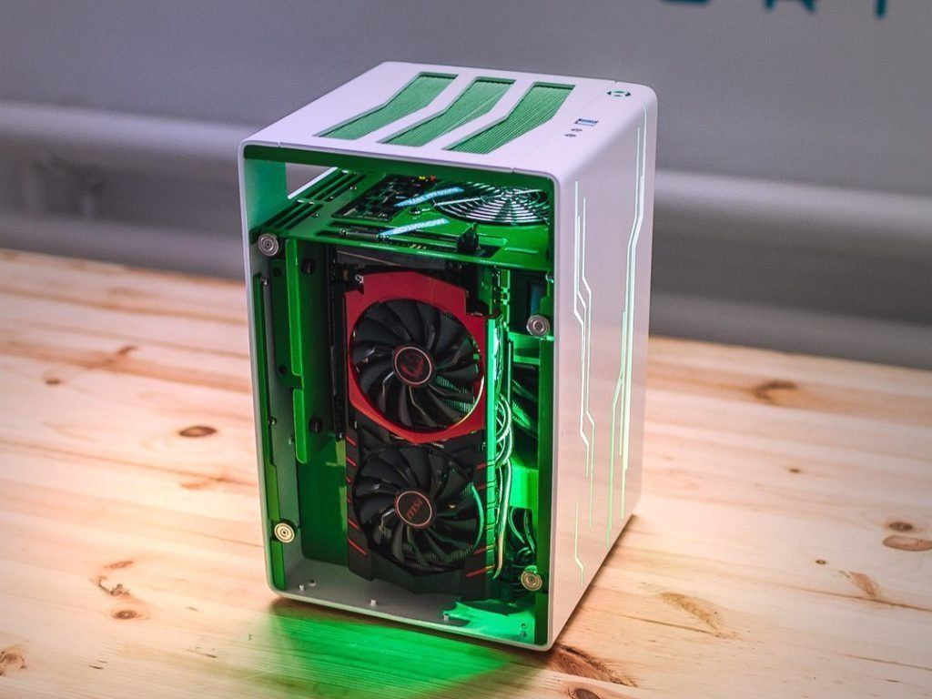 Leur rival Zotac privilégie un format plus pratique : une coque carrée d'une largeur de 13 cm et d'un poids de 600 g.