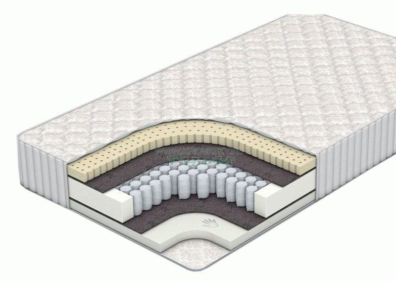 Le matelas à effet anatomique, de 2 mètres de long et 90 cm de large, a une fermeté moyenne des deux côtés. La particularité de ce modèle réside dans la disposition indépendante des ressorts, c'est-à-dire chaque élément est placé dans un étui individuel en matériau non tissé dense. Contrairement au bloc Bonnel classique, les ressorts ne sont pas reliés entre eux. Grâce au travail séparé de nombreux éléments métalliques, un haut niveau de support et une réaction de haute qualité à la charge sont atteints (110 kg par lit).